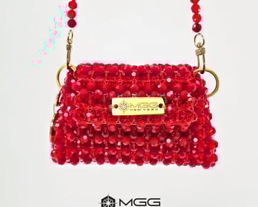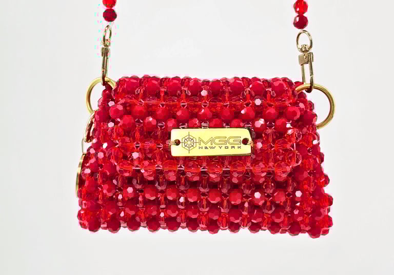 Piezas hechas a mano con cuentas de cristal que reflejan luz.